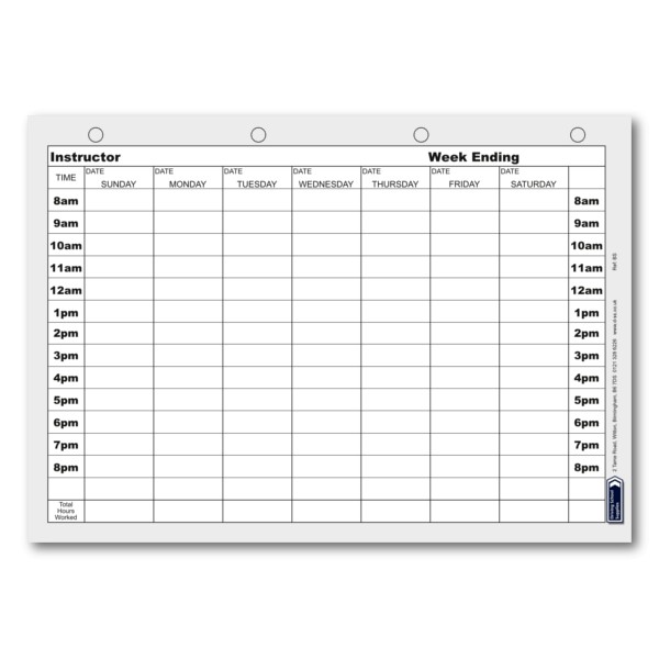 These hole-punched sheets, for use with the Instructors Ring Binder, allow full flexibility in inserting or removing sheets at will, and commencing at any date you choose rather than being tied to an annual diary.